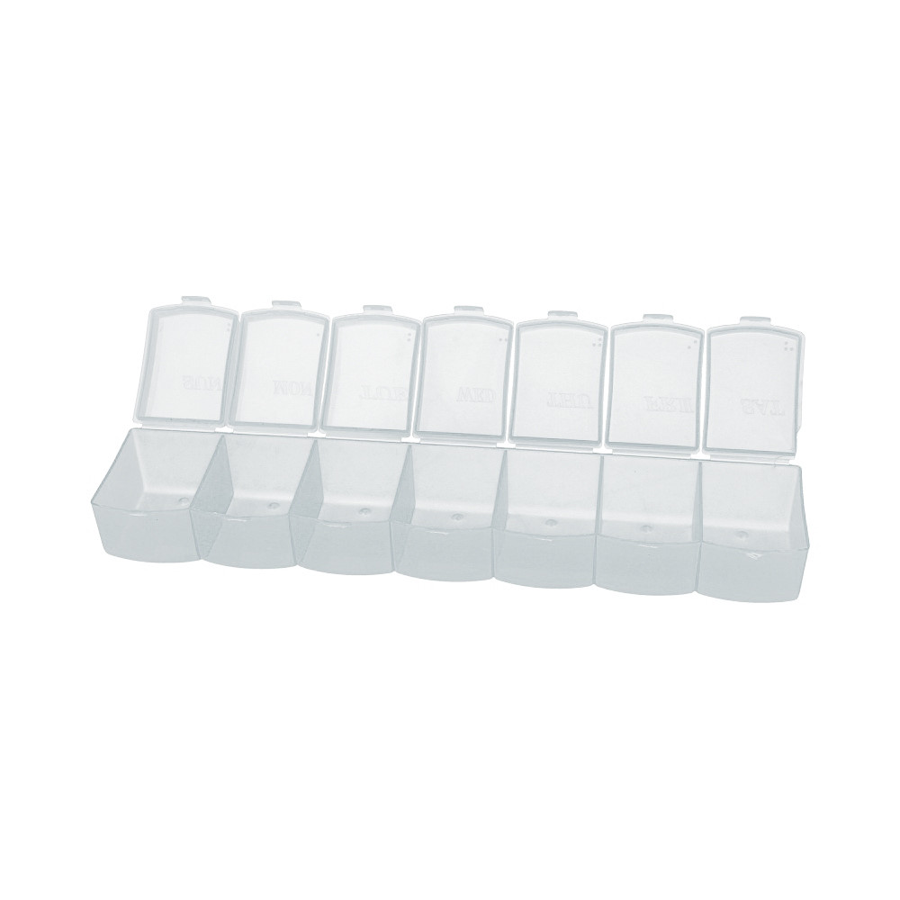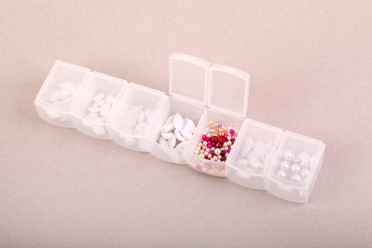 Контейнер секционный прямоугольный со съемными защелкивающимися крышками из матово- прозрачной пластмассы . На секциях указаны дни недели и шрифт Брайля для слабовидящих и слепых людей. Применяется для хранения бисера, мелкой фурнитуры, аксессуаров для шитья и рукоделия. Можно использовать для хранения таблеток. Отлично подходит для хранения мелких рыболовных снастей а также канцелярских принадлежностей.. Удобен в эксплуатации. Срок годности не ограничен. Общий размер контейнера 25. 5х5. 5х4 см. Сообщить о неточности в описании